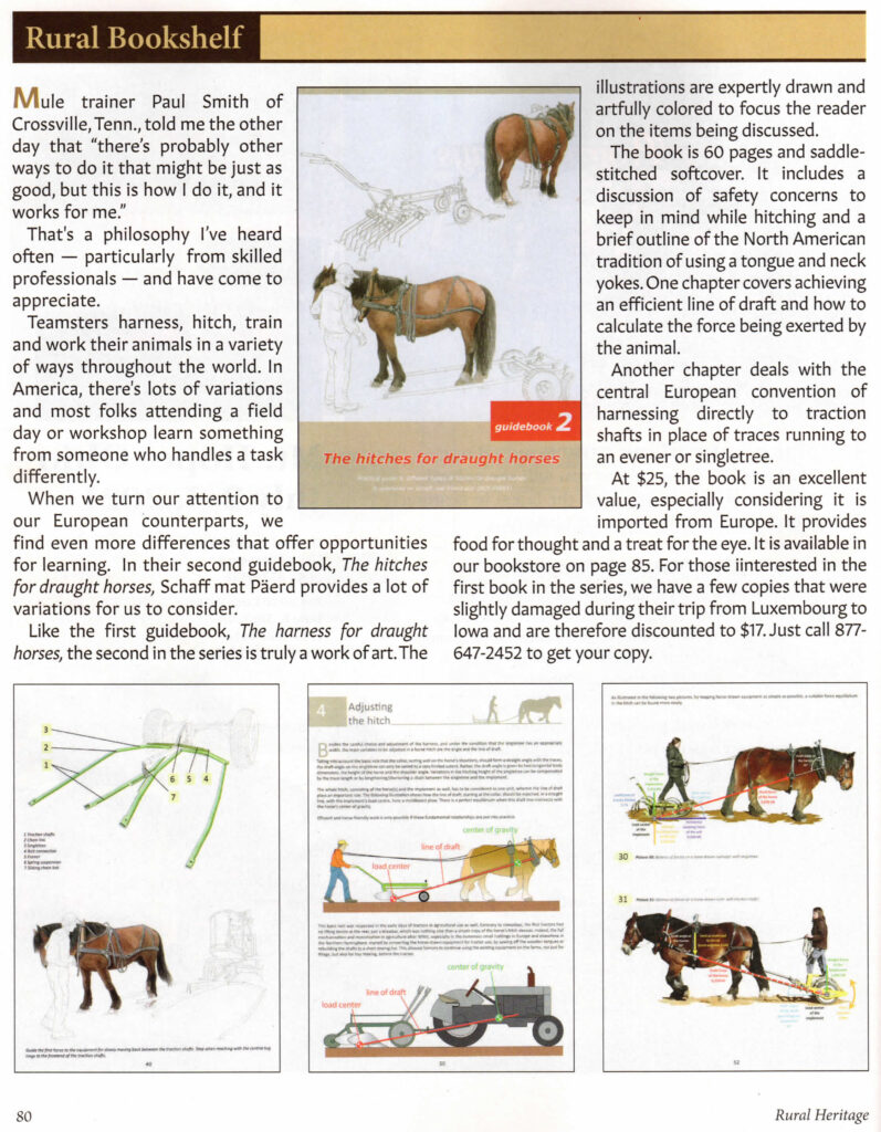 Im Juni 2021 erschien im Rural Heritage Magazine (Volume 46 / Number 3) eine Buchbesprechung zur zweiten Ausgabe „The hitches for draught horses“ unserer Ratgeberserie.