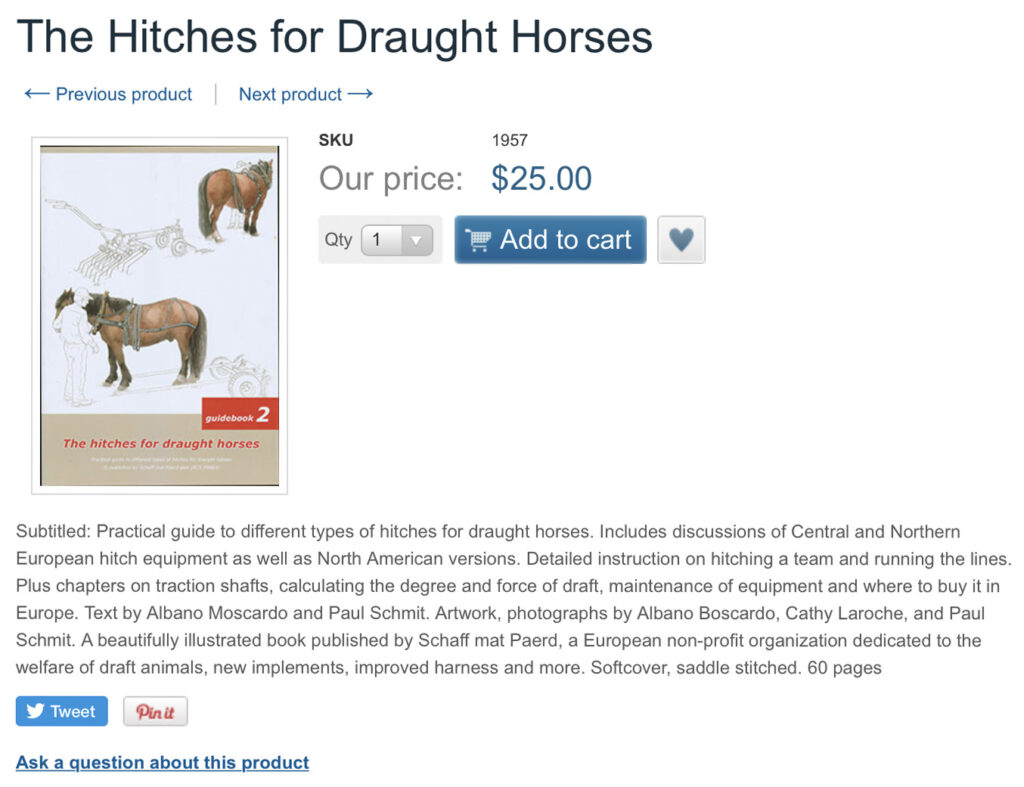 À partir du juin 2021 la deuxième éditionde notre série de guides pratiques “The hitches for draught horses” sera disponible aux États-Unis auprès de Mischka Press.